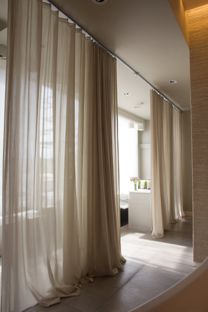 Open-plan beauty rooms can feel chaotic or lack privacy. Elegant curtain dividers create distinct zones without permanent walls, making your space versatile and stylish. They’re perfect for dividing makeup, skincare, or relaxation areas. Who says zoning has to be boring?