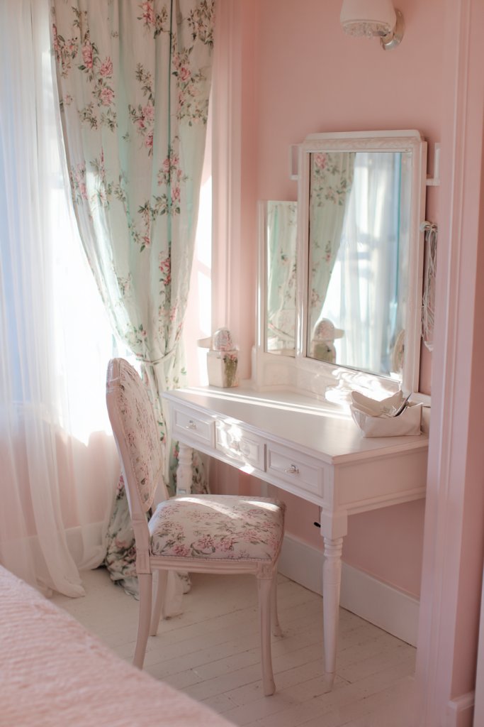 Imagine sheer, flowing curtains in a soft blush or shimmering metallic, gently partitioning your vanity from a cozy seating nook. The fabric adds softness and movement, while the color complements your decor. When drawn, they offer privacy; when open, they unify the space. Natural light filters through, creating an airy atmosphere.