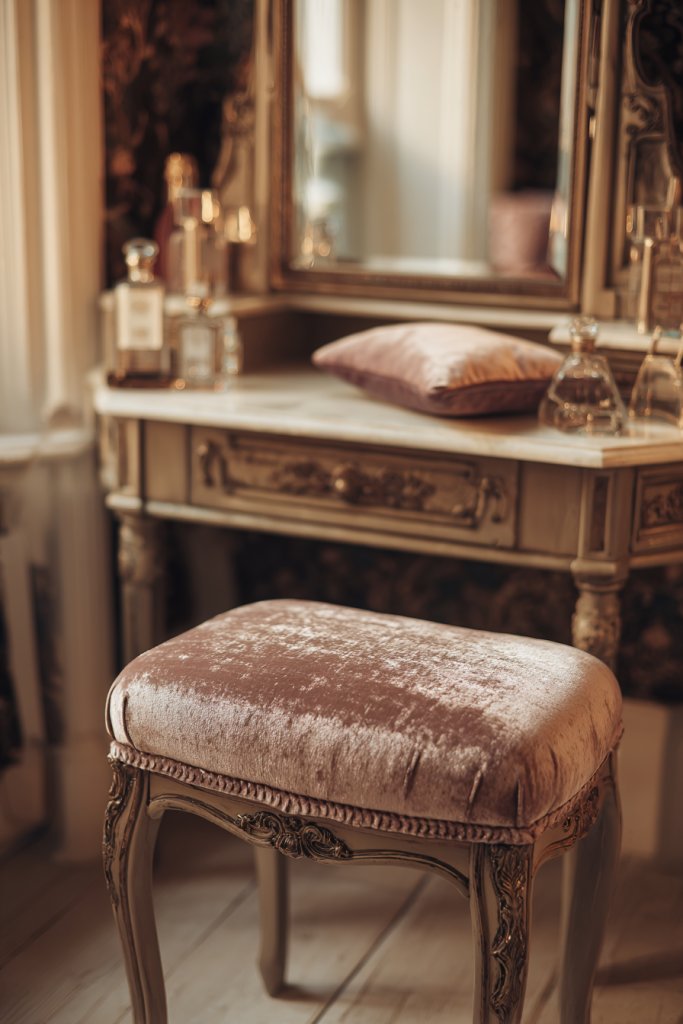 A basic stool just doesn’t cut it when you want to feel pampered. A vintage-inspired, plush-upholstered vanity stool adds comfort and charm, making every beauty session a treat. It’s about elevating your space from functional to fabulous. Who says getting ready can’t be luxurious?