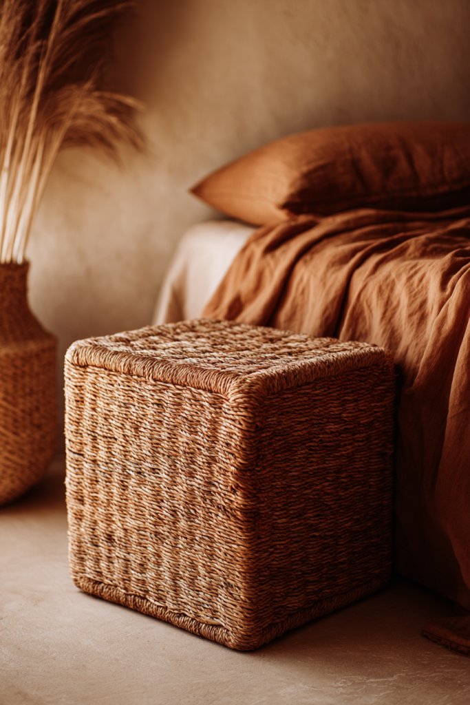17. Natural Rattan or Wicker Nightstand for Texture and Warmth