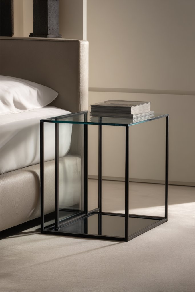 A minimalist metal and glass nightstand redefines modern elegance with its simplicity and sophistication. It’s a timeless piece that adapts seamlessly to evolving decor styles. Once set up, it elevates your entire room’s vibe, making you feel like a design pro. Your bedroom just got a whole lot more chic and functional.