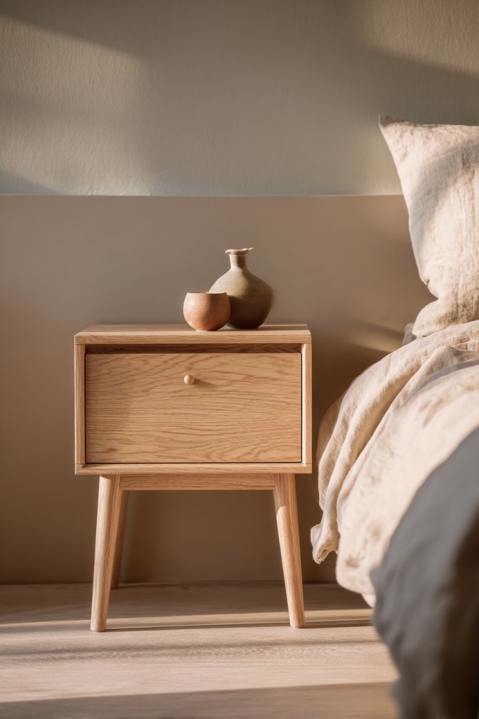 Dreaming of a cozy, inviting bedroom that feels calm and uncluttered? A Scandinavian-inspired light wood nightstand with a simple drawer hits that sweet spot perfectly. It combines functionality with an aesthetic rooted in minimalism and natural materials. Ideal for those who love a warm, airy, and organized space, it’s the understated hero of bedroom furniture.