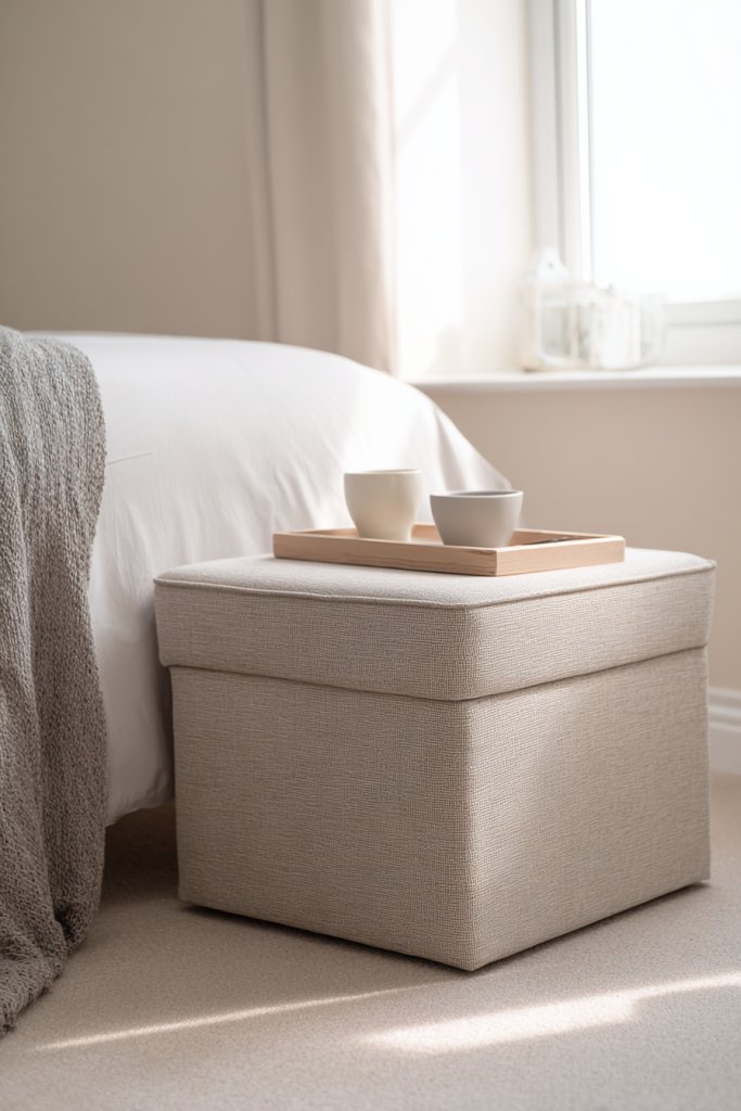 6. Multi-Functional Ottoman as a Bedside Table and Seating