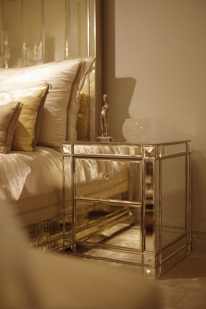 7. Mirrored Nightstand to Reflect Light and Add Glamour