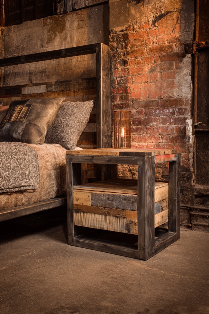 8. Industrial Style Nightstand with Reclaimed Metal and Wood