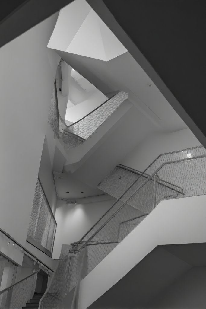 Visualize a floating staircase with sleek, straight lines that seem to defy gravity, anchored by minimal supports. Alternatively, a spiral staircase with bold, geometric patterns acts as both art and function. Materials like glass, metal, or wood can be combined for a striking effect. Lighting underneath or along the treads enhances the sculptural quality, creating drama and depth.