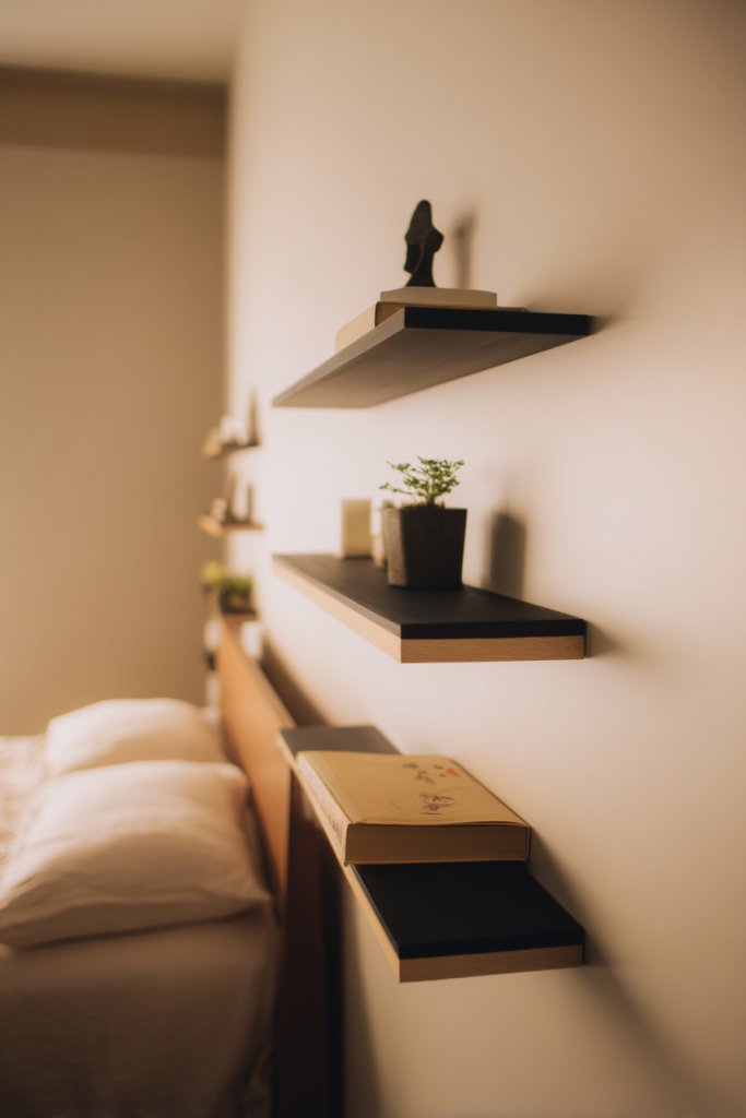 Is your bedroom lacking that curated, styled look? Artistic shelving offers a practical yet decorative solution. It’s a perfect way to display your favorite decor items and add personality without cluttering surfaces. Plus, it makes your room look effortlessly styled, like a boutique hotel.