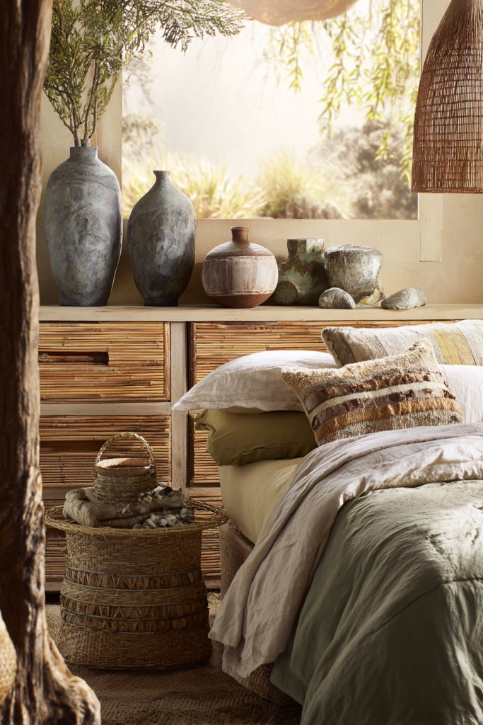 Clutter can turn a beautiful bedroom into chaos, right? Finding stylish storage solutions that also serve as decor can be a challenge. Woven baskets are the perfect answer—they hide the mess while adding a natural, textured element to your space. Plus, they’re versatile enough to serve multiple purposes.