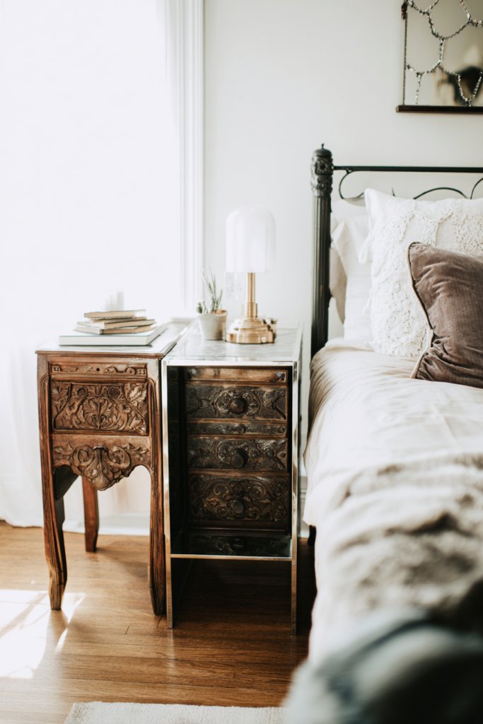 7. Eclectic Mix of Vintage and Modern Nightstands