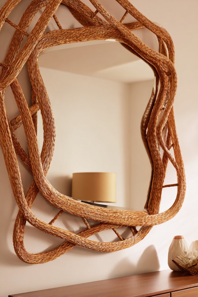 12. Artistic Mirrors with Rattan or Wooden Frames
