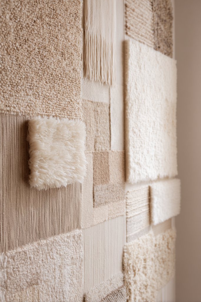 16. Neutral-toned Wall Art with Textured or Fabric Elements