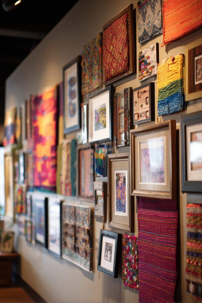 Gather your favorite photos, textiles, and small art pieces. Arrange them on the floor first to experiment with layout. Mount frames securely, using hooks or adhesive strips. Mix different sizes and shapes for visual interest, maintaining a cohesive theme through colors or materials. Use level tools to keep everything aligned. Regularly update with new photos or textiles to keep it fresh.