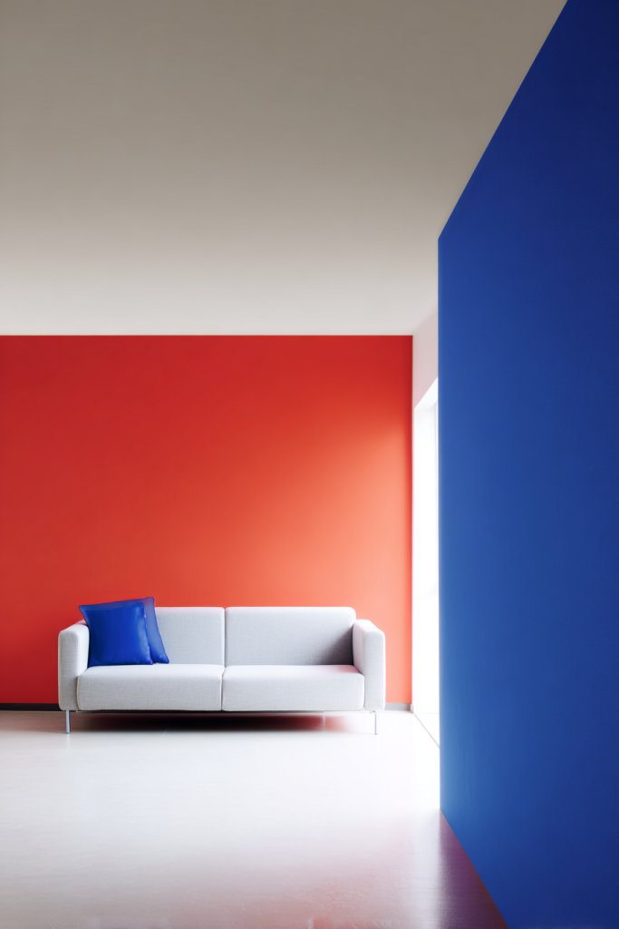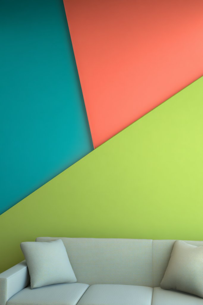 Imagine a wall divided into bold blocks of deep purple, turquoise, and sunny yellow. The crisp edges and contrasting colors create a playful, energetic vibe. When paired with simple furniture and minimal accessories, the eye naturally moves across the space, inviting curiosity and engagement.