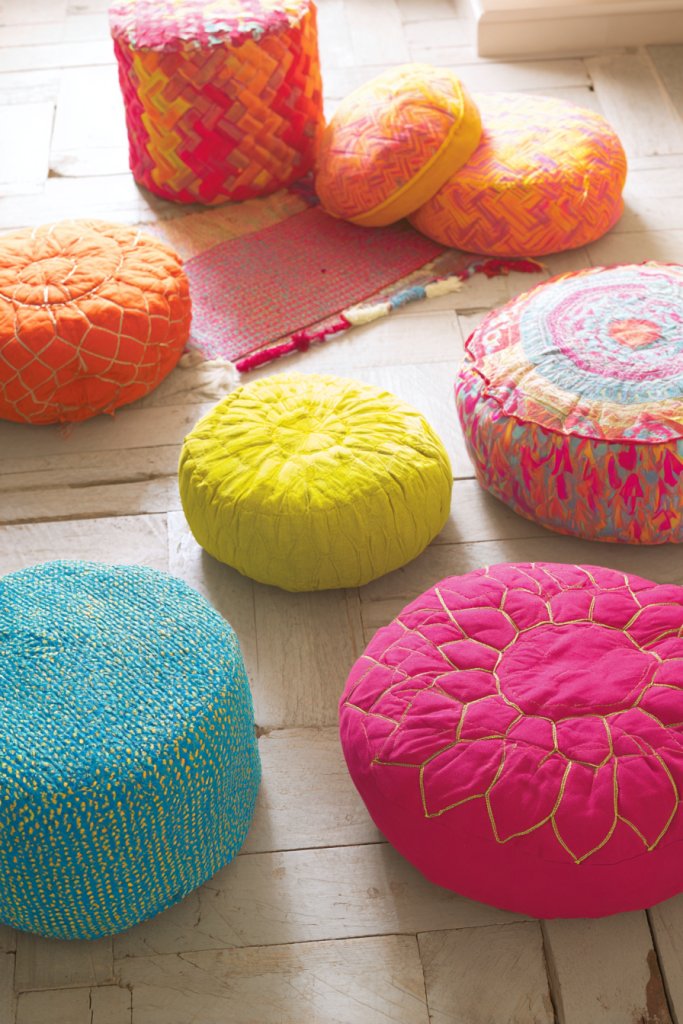 Looking for versatile, comfy decor that also adds a punch of color? Floor cushions and poufs are perfect for casual seating and visual interest. They’re easy to move around, making your space flexible and fun. Plus, they instantly boost the room’s vibrancy.