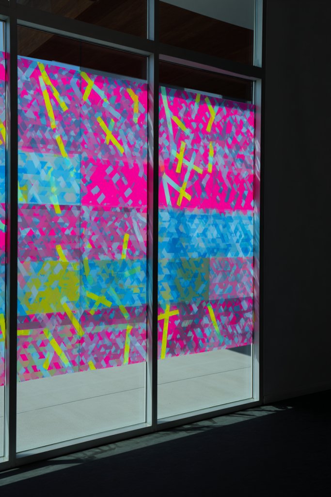 Imagine a window decorated with a bold, abstract film in fiery reds and oranges. When sunlight filters through, it casts colorful patterns across your room. The film adds a layer of artistry and privacy without heavy curtains or blinds.