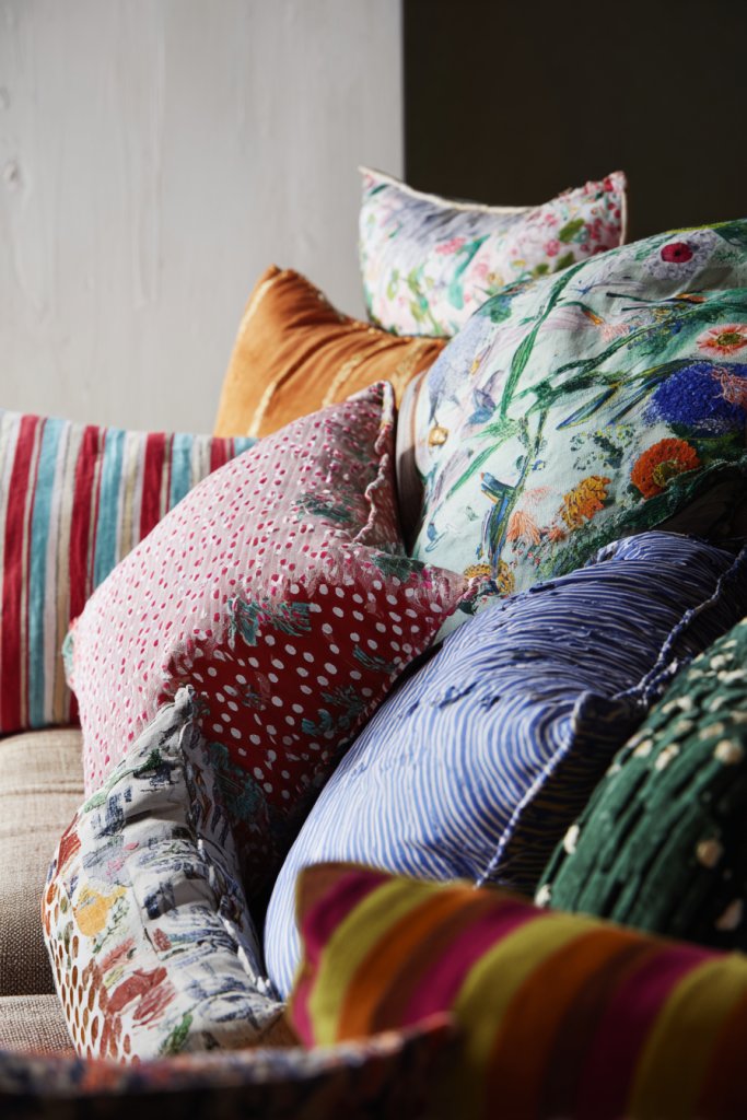 3. Cheerful Throw Pillows in Mixed Patterns and Textures
