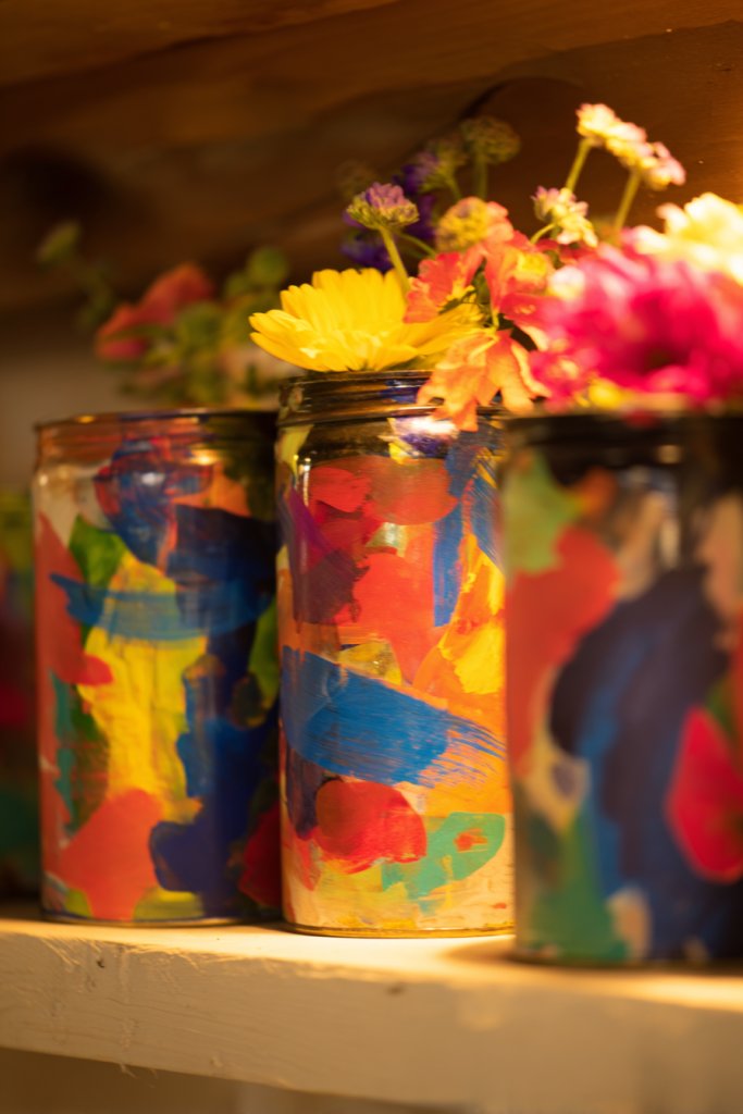 13. Assemble a Colorful DIY Vase Using Repurposed Containers and Paint