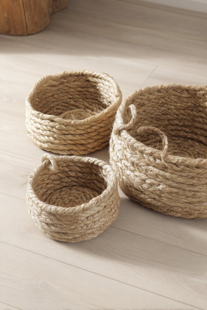 20. Personalize a Set of DIY Coiled Rope or Twine Baskets for Organization