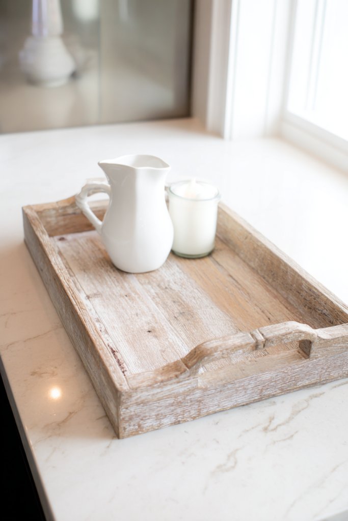 Decorate the tray with stenciled sayings, painted patterns, or monograms. Use it to display everyday essentials or seasonal accessories. Incorporate leather or metal handles for a custom touch. For a layered look, place a cloth or runner underneath and add seasonal accents on top. Personal touches make it an heirloom-like piece.