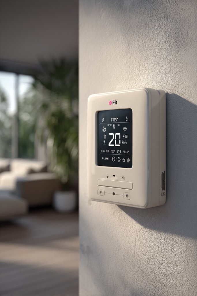 Imagine a sleek digital thermostat mounted on your wall, its screen displaying a customizable schedule. You program it to lower the temperature during work hours and ramp up before you arrive home. The interface is intuitive, with simple buttons or a touchscreen. During winter, you notice your home stays cozy, and in summer, it stays cool without unnecessary running of the AC. The device seamlessly integrates with your eco-conscious lifestyle, providing peace of mind and savings.
