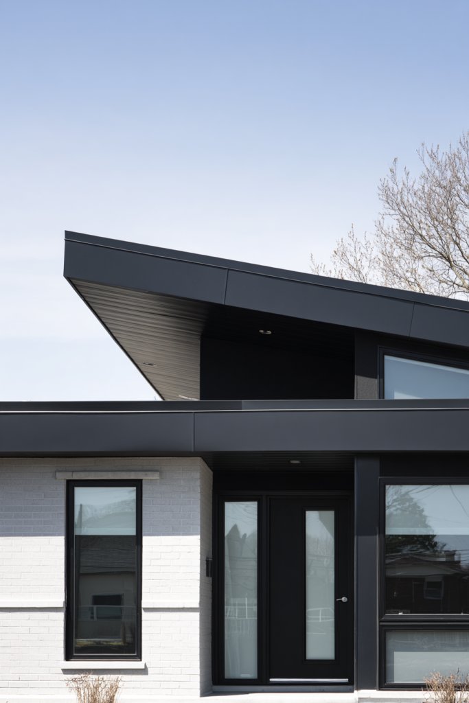 Visualize a roofline with decorative gables, dormers, or contrasting trims that break up the monotony. The addition of architectural brackets, corbels, or layered eaves adds depth and visual interest to the roof’s edge. The result is a dynamic, eye-catching profile that complements the facade. Different materials and colors can be combined for a tailored look.