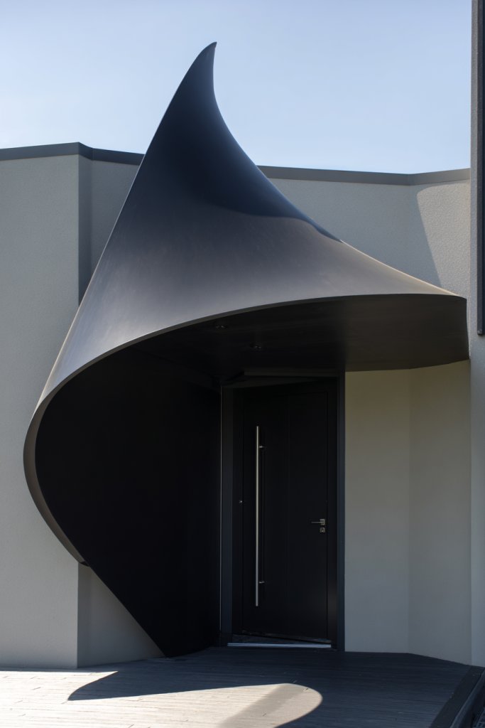 20. Incorporating Modern Canopies or Awnings in Unique Shapes