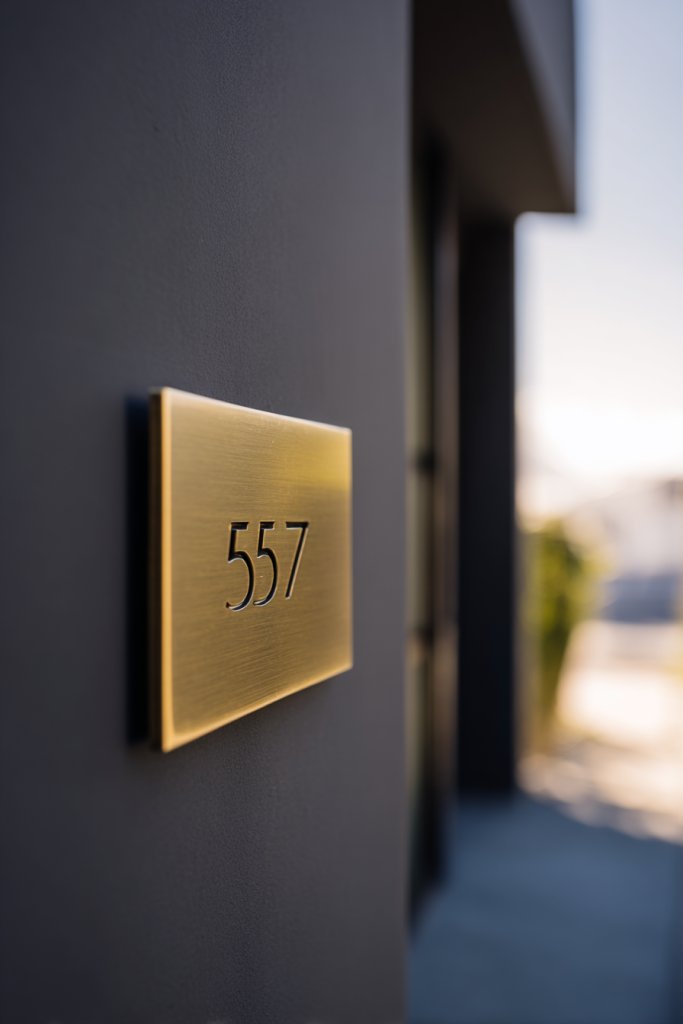 Picture modern metallic numbers in brushed brass or matte black mounted on a contrasting textured wall. Or imagine a set of handcrafted wooden numerals with a rustic finish placed against a sleek stone facade. Illuminated numbers, either backlit or halo-lit, make your address pop at night. The font style and material choice reflect your personality, from classic to eclectic.