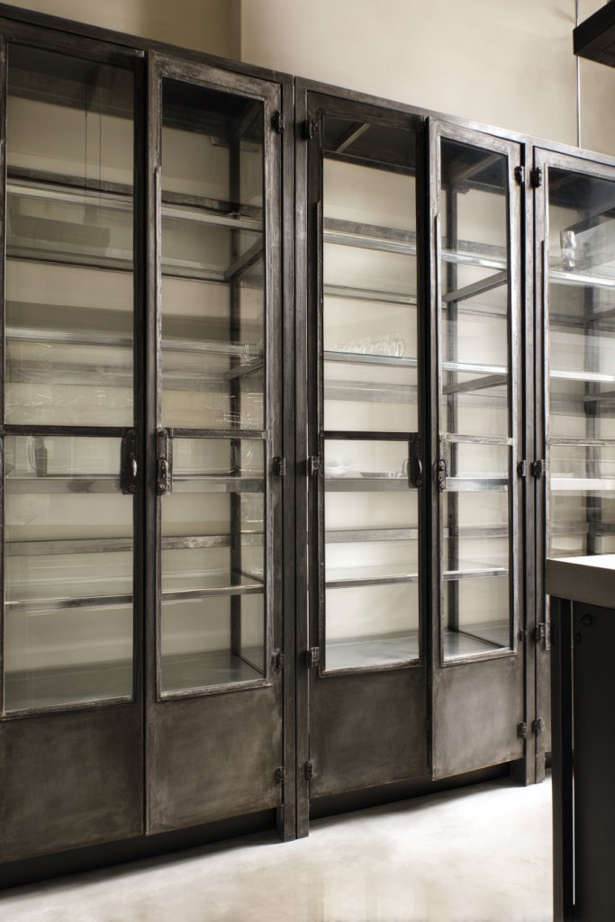 14. Industrial-Style Metal Frame Cabinets with Glass Doors