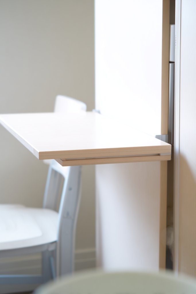 Imagine a sleek, slim table mounted to your wall that folds down effortlessly when it’s time to eat or prep. When tucked away, it leaves your kitchen open and airy, with only minimal hardware visible. The surface might be a smooth wood or durable laminate, with a subtle edge profile. Think of it as a hidden gem, neatly hidden until you need it, then ready to serve. The space feels uncluttered, yet instantly adaptable.