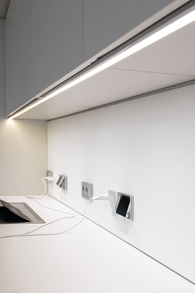 9. Under-Cabinet Lighting with Integrated Power Outlets