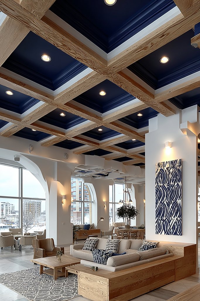 1. Coffered Ceiling with Bold Paint Accents for Architectural Drama