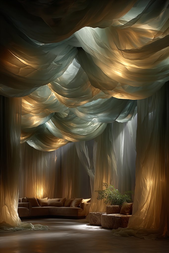 12. Suspended Fabric Canopy or Installations for Soft, Textural Contrast