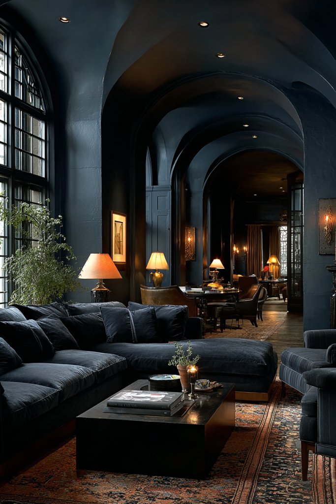 Picture a ceiling painted in matte midnight black, contrasting sharply with light-colored walls and furniture. The dark surface absorbs excess light, giving the room a plush, enveloping feel. When paired with warm lighting, the space feels intimate and luxurious. The ceiling becomes a bold, grounding element that anchors the room’s design.
