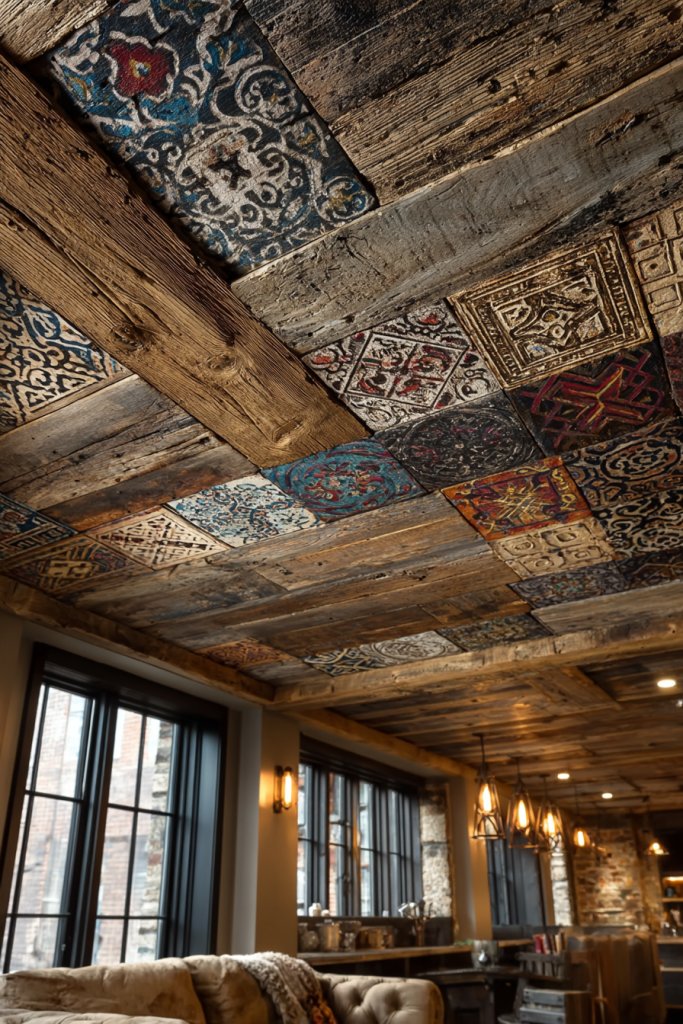 15. Patterned Ceiling Tiles or Wood Planks for Vintage or Industrial Style