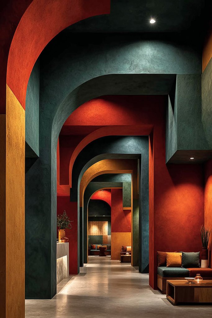 Imagine a deep emerald green ceiling that perfectly matches or contrasts with rich, warm walls. The color draws the eye upward, giving the room a sense of height and intimacy. When combined with layered lighting, the hues glow softly, enveloping the space in a warm embrace. It’s like wrapping your room in a vibrant, stylish blanket.