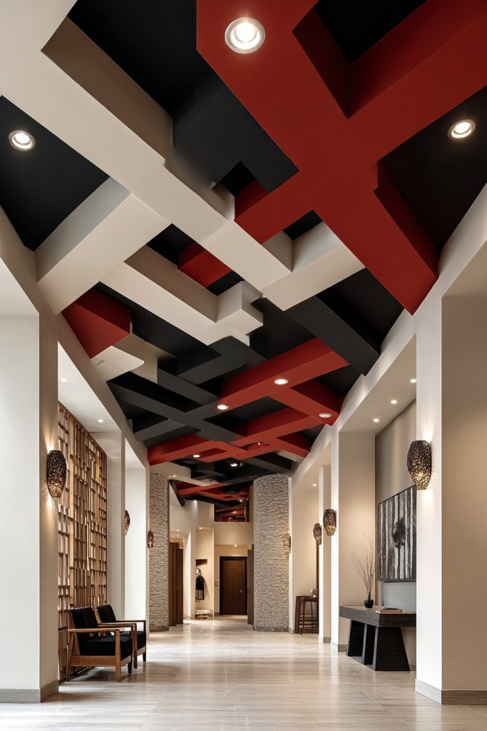 5. Geometric Ceiling Patterns with Contrasting Colors for Visual Impact