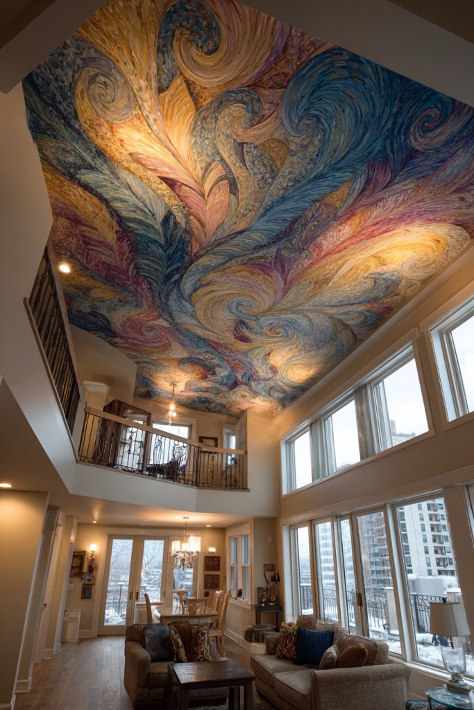 8. Artistic Ceiling Murals or Decorative Paint Techniques for Unique Flair