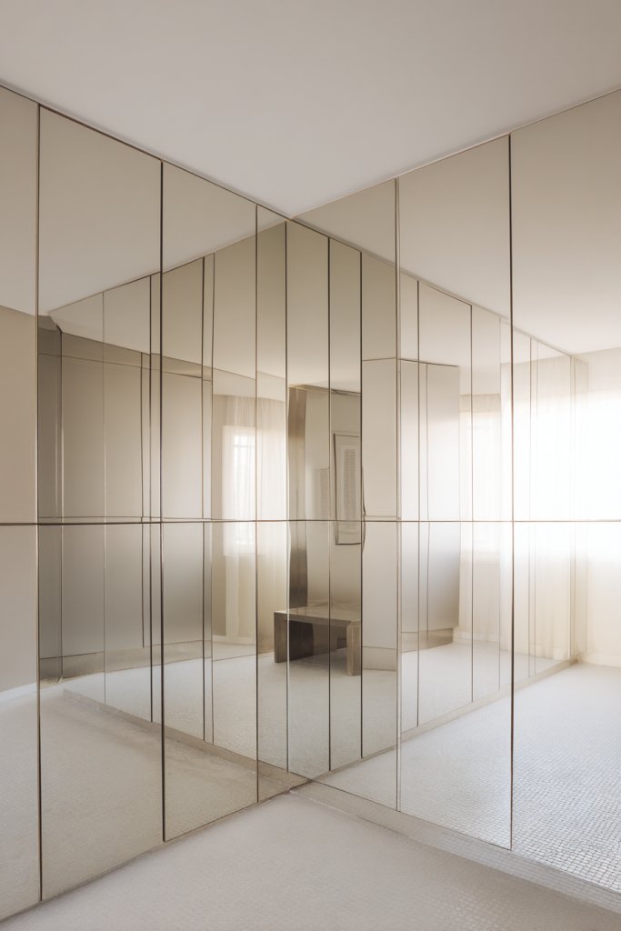 1. Floor-to-Ceiling Mirrored Panels for Dramatic Height Enhancement