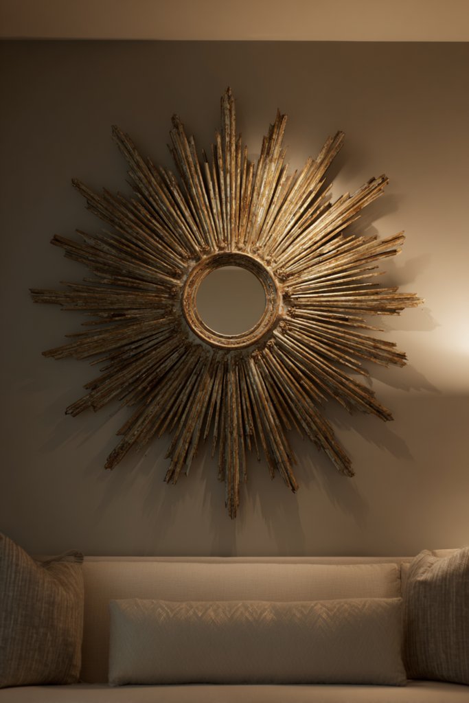 2. Vintage Sunburst Mirrors as a Focal Point