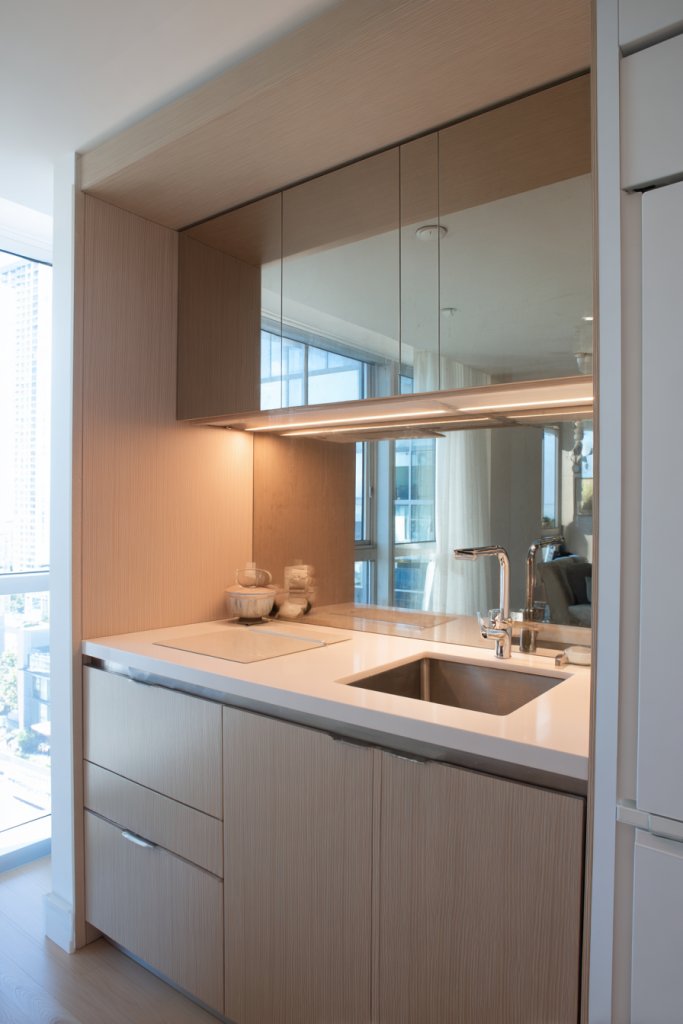 5. Mirrored Backsplash for Small Kitchens or Entryways
