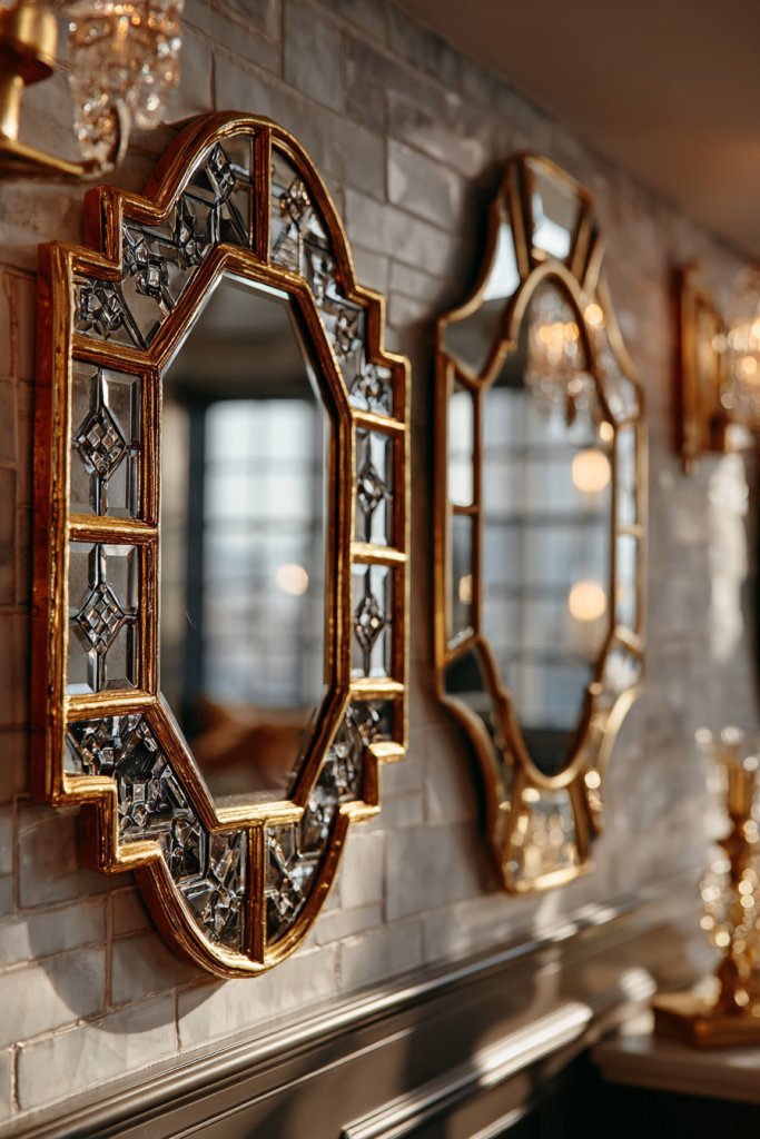 Add a pop of color or metallic accents to the frame for a personalized touch. Incorporate textured or painted borders around the mirror to complement your decor. You could also hang small mirrors around a central large piece to create a reflective gallery wall. Incorporate LED backlighting for a modern, luminous effect that highlights the shapes.