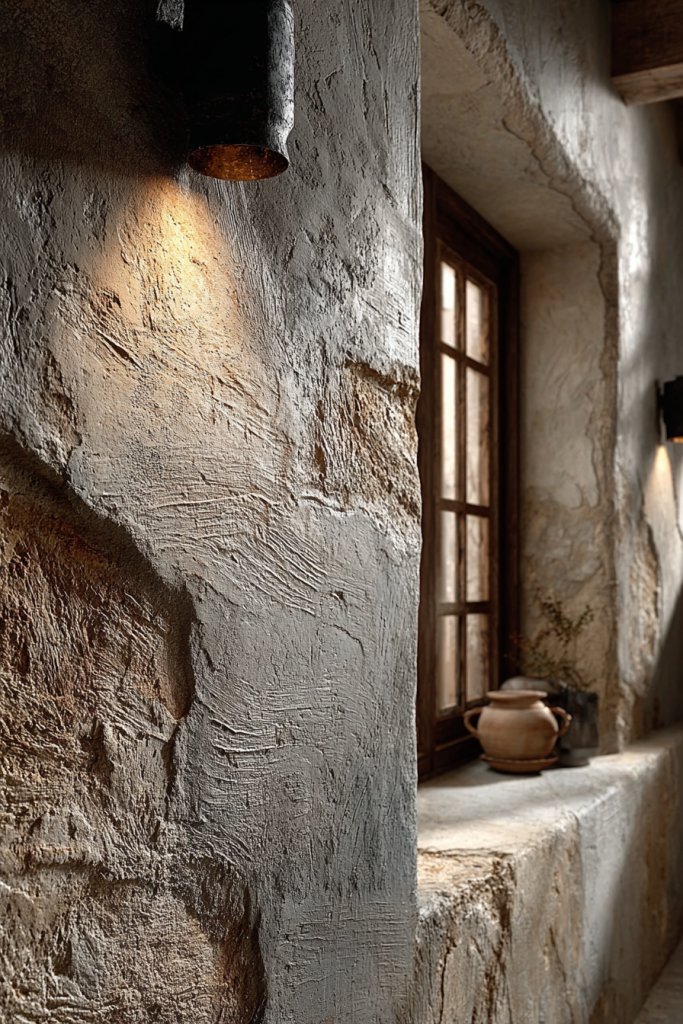 Imagine walking into a room with walls coated in a soft, sandy plaster that catches the light in subtle ways. Or visualize a wall with a gentle stucco finish that adds a tactile, almost earthy feel. These textures create a cozy, inviting atmosphere, like a boutique hotel or a rustic retreat. The layered surface invites touch and visual curiosity, making your space feel curated and intentional.