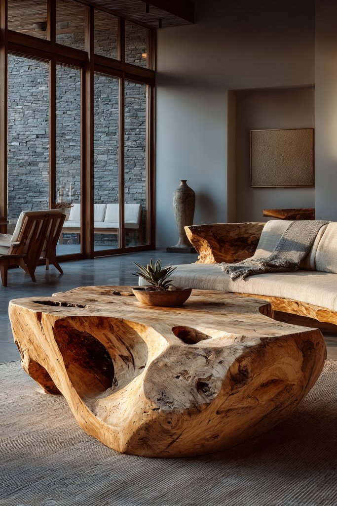 2. Sculptural Modern Coffee Tables with Natural Materials