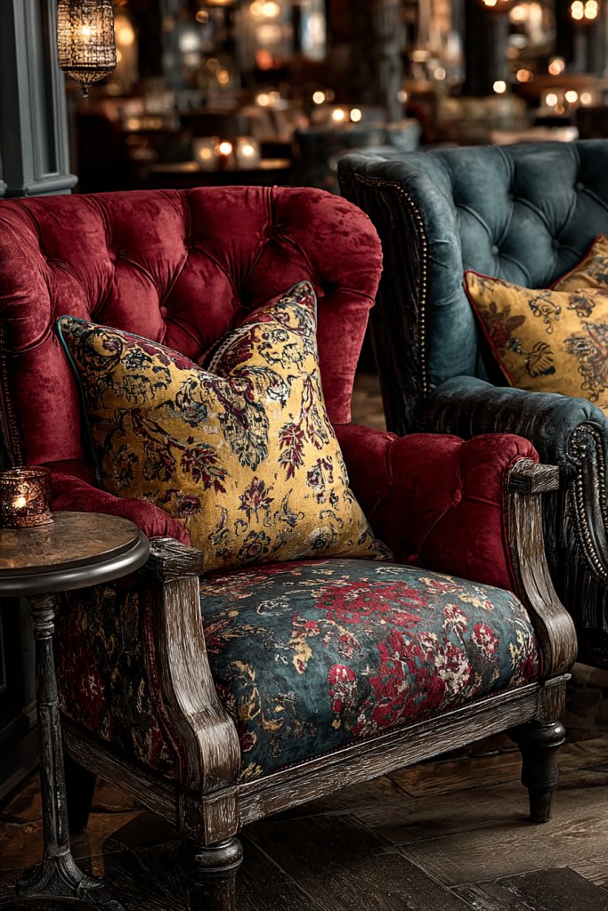 Picture a sleek, modern armchair with clean lines paired with a vintage-inspired wingback chair upholstered in faded velvet. The contrast of styles and eras adds depth and personality. Placing them around a central coffee table creates a cozy, conversational nook. Different shapes, colors, and textures keep the eye moving and make the room more dynamic.