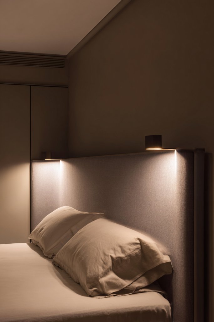 16. Customized Wall-Mounted Headboard with Built-In Reading Lights