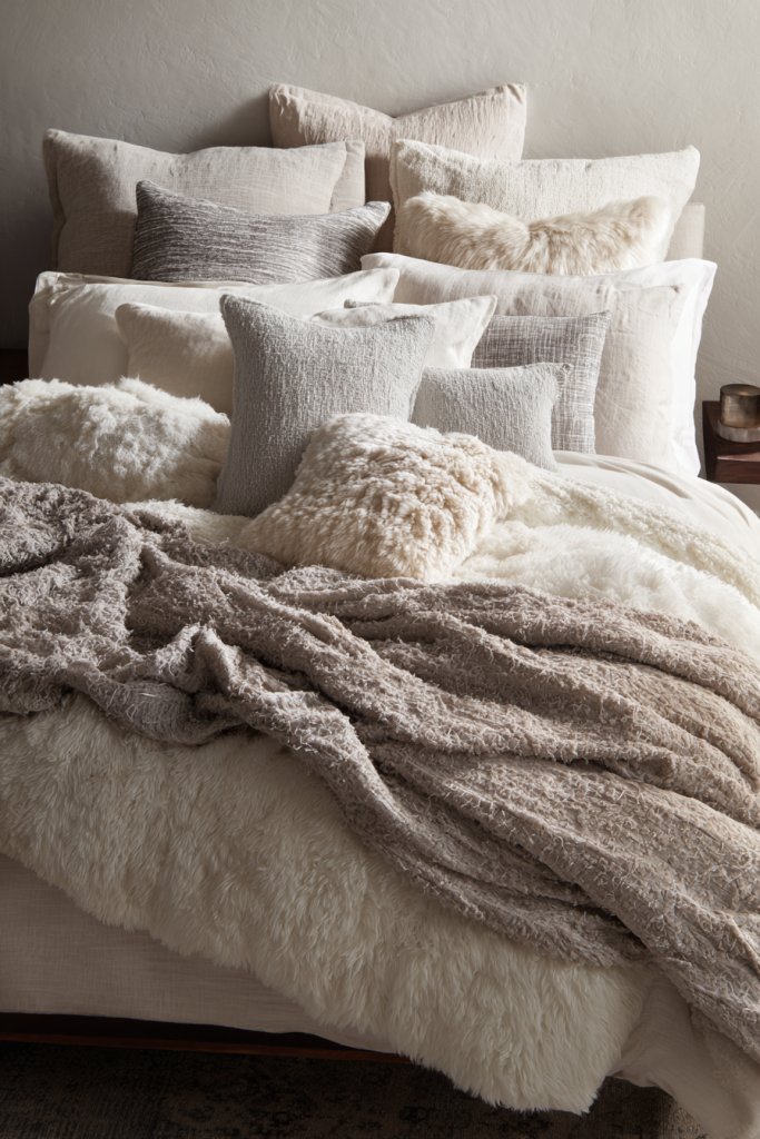 3. Layered Bedding with Plush Throws and Decorative Pillows