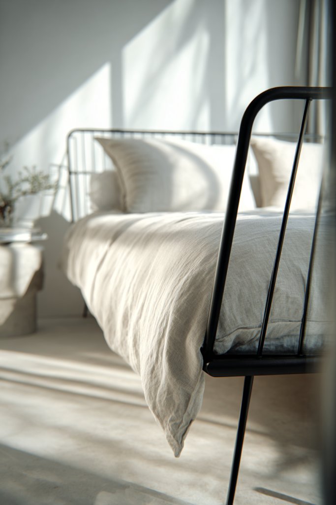 Select a bed with a low profile and slim posts or rails. Ensure the frame is sturdy and well-constructed. Keep the surrounding furniture minimal to avoid cluttering the space. Use light-colored bedding to enhance the airy feel. Consider adding a low-profile headboard or a simple platform for stability. Regular cleaning and checking hardware will prolong the frame’s lifespan.