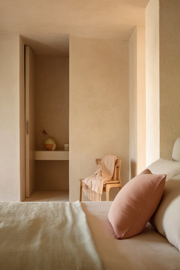 Visualize a bedroom with blush pink or muted teal cushions on a neutral bed. A soft cream throw blanket with a chunky knit texture adds warmth and visual interest. Small decorative accessories—like a pastel-colored tray or a light-colored ceramic dish—make the space feel layered and inviting. These touches create a harmonious balance of calm and color.