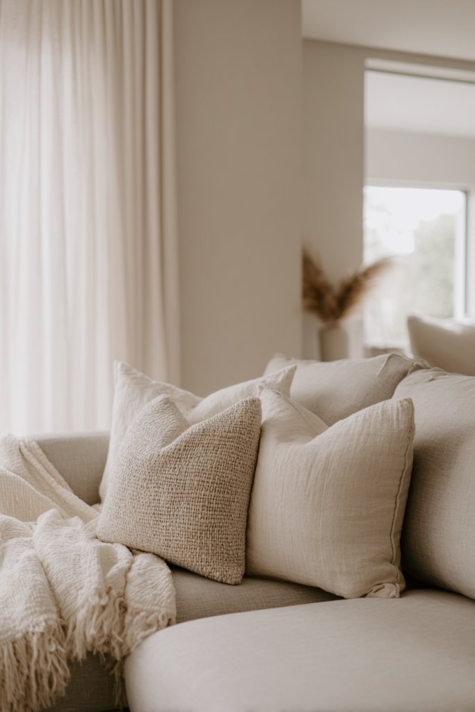 Start with a neutral or matching base cushion set. Add throws in textures like boucle, velvet, or chunky knit for tactile contrast. Combine different shapes and sizes to keep things interesting. Use decorative cushions sparingly—too many can clutter the look. Play with layering until you find a balanced yet inviting arrangement.