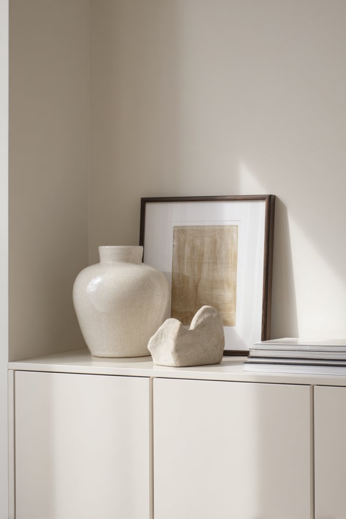 Use a mix of functional and decorative objects—like a stylish bowl for keys or a sculptural paperweight. Change displays seasonally with items like vintage trays, antique vases, or modern ceramics. Keep the display uncluttered, with enough space between objects for visual breathing room. Incorporate natural textures or metallic finishes for added interest.